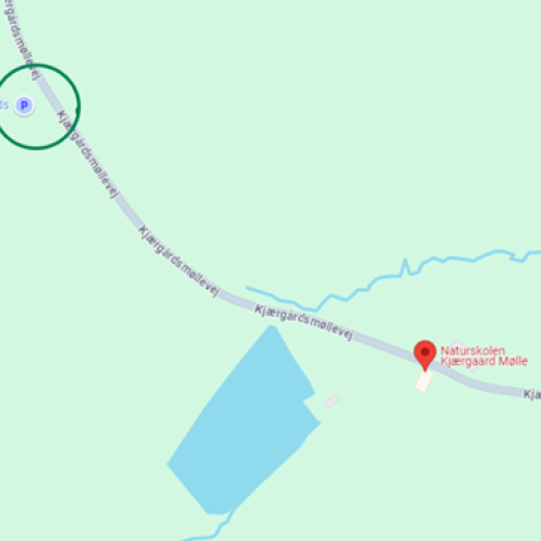 Find området ved at se på kortet. Du kan holde på P-pladsen vest for Naturskolen Kjærgårdsmølle,