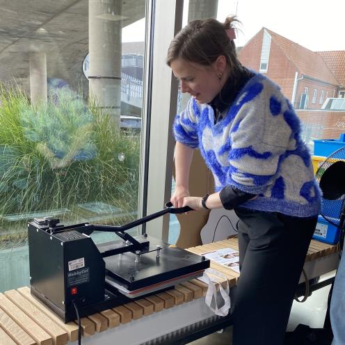 Herefter kan du påføre specialpapiret på stoffet med varmepressen.