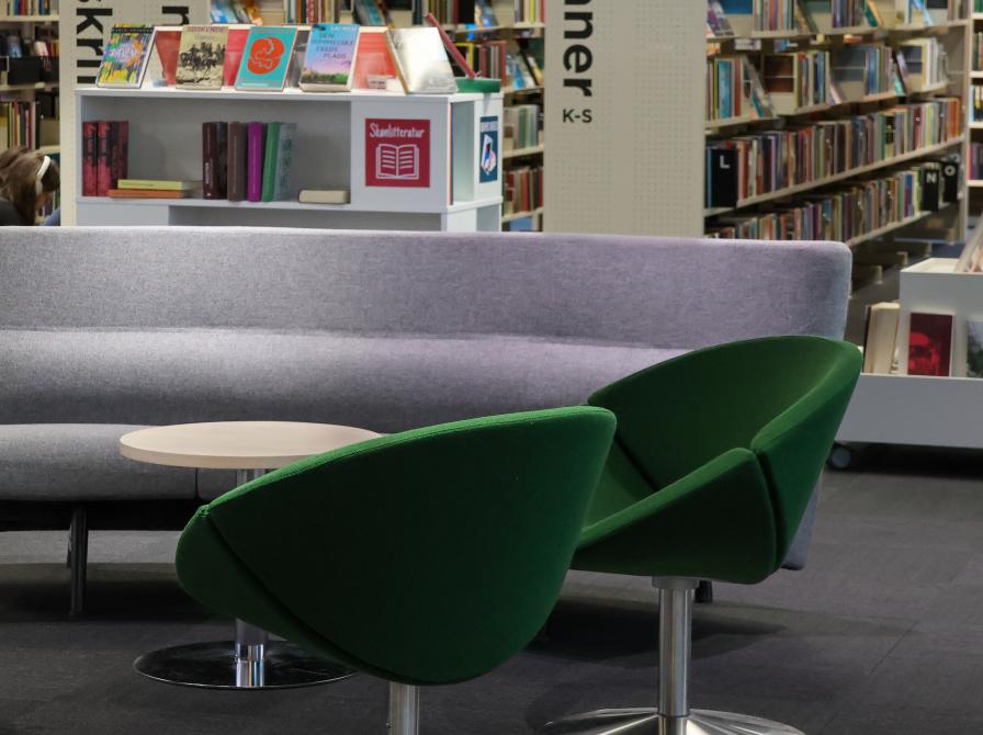 Vi har et legeområde til børn, der er afgrænset fra resten af biblioteket. Det finder du i børnebiblioteket.