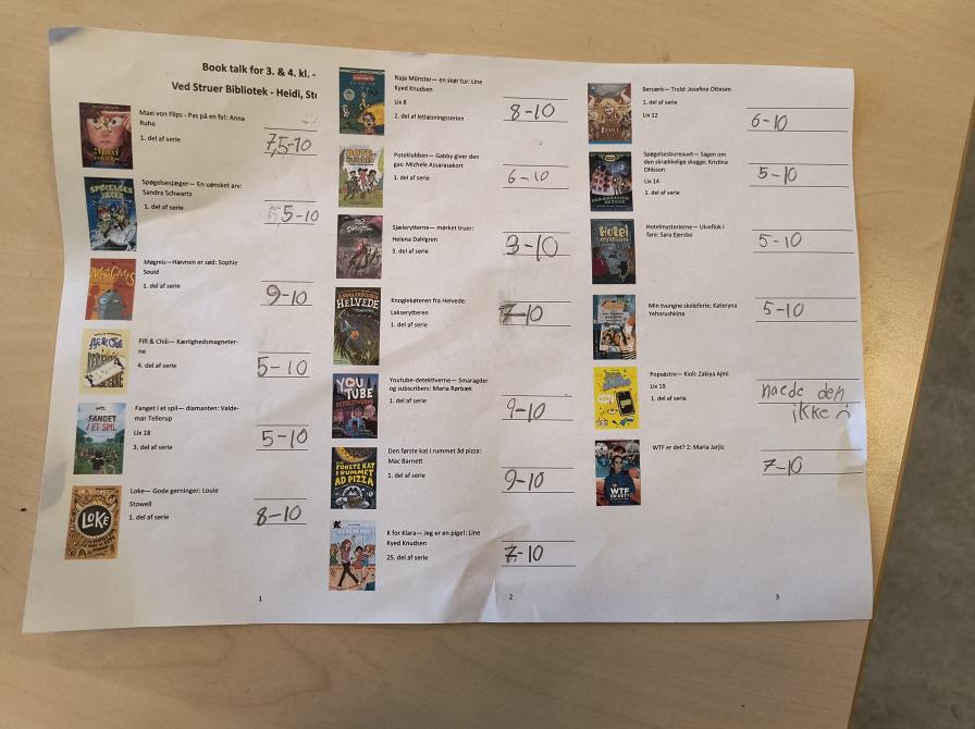 Årligt besøger børnebibliotekarerne kommunens skoler, hvor de kommer med boganbefalinger af bøger til aldersgruppen. Her er udvalgt bøger de syntes er særligt sjove eller spændende. Du kan kontakte biblioteket hvis du gerne vil have gode anbefalinger til din skole.