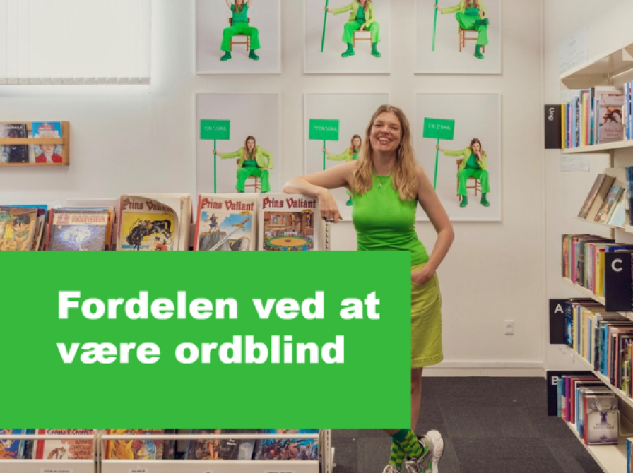 På Struer Bibliotek har kunstner Julie Nymann udstillet sine plakater i forbindelsen med udstillingen 'Fordelene ved at være ordblind' der kan opleves på Struer Museum frem til 19. oktober 2025