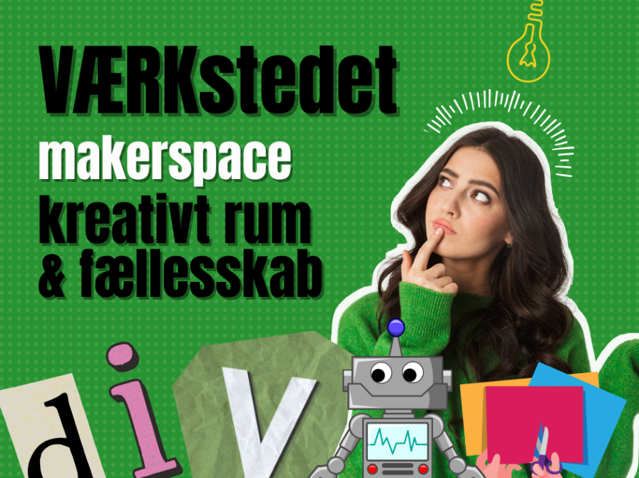 På Struer Bibliotek har vi et lille VÆRKsted. Hvor vi holder workshops og forløb for børn og voksne med fokus på digital produktion, kreativitet, DIY og tinkering.